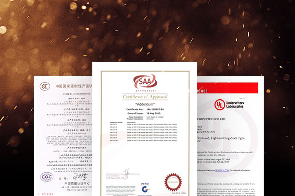 完善生產管理制度及品質管理制度,所有的光源、驅動均通過ul、3c、ce,tuv、saa等質量認證生產制程中嚴格把關每件產品。